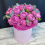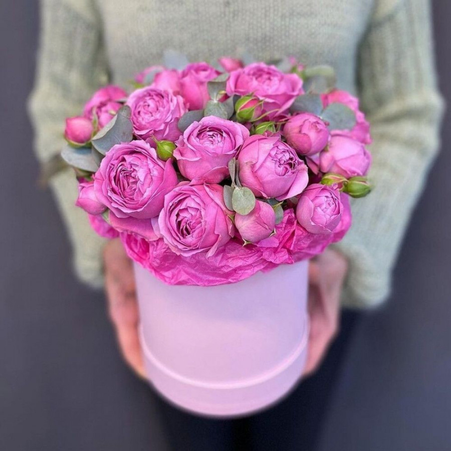 7 розовых кустовых пионовидных роз в шляпной коробке в Севастополе